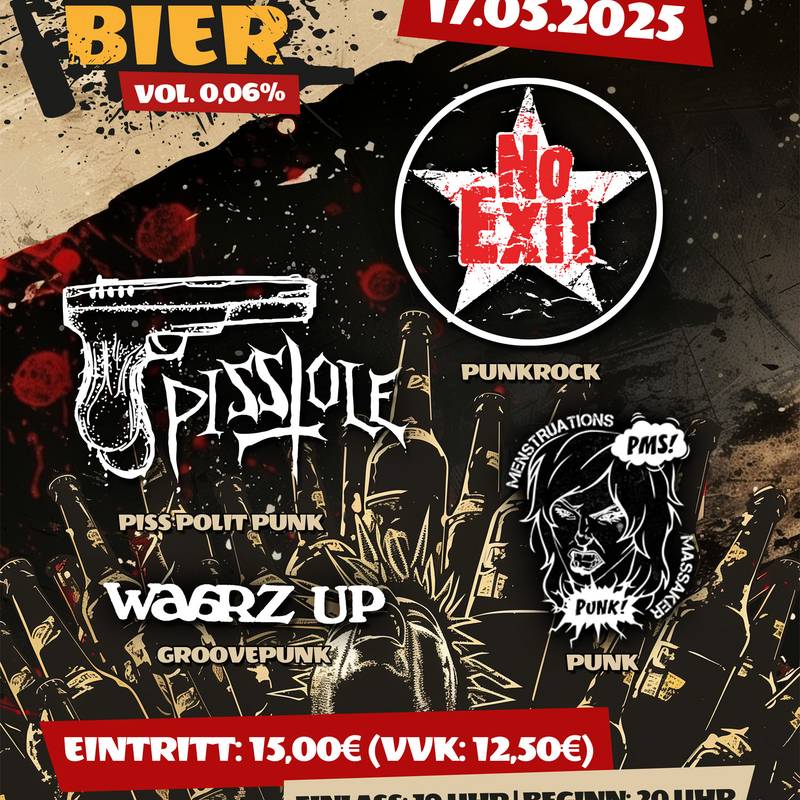 Es wird wieder Laut! Die Ausgabe Nummer sechs mit: No Exit, Pisstole, Menstruationsmassaker und Waarz Up!